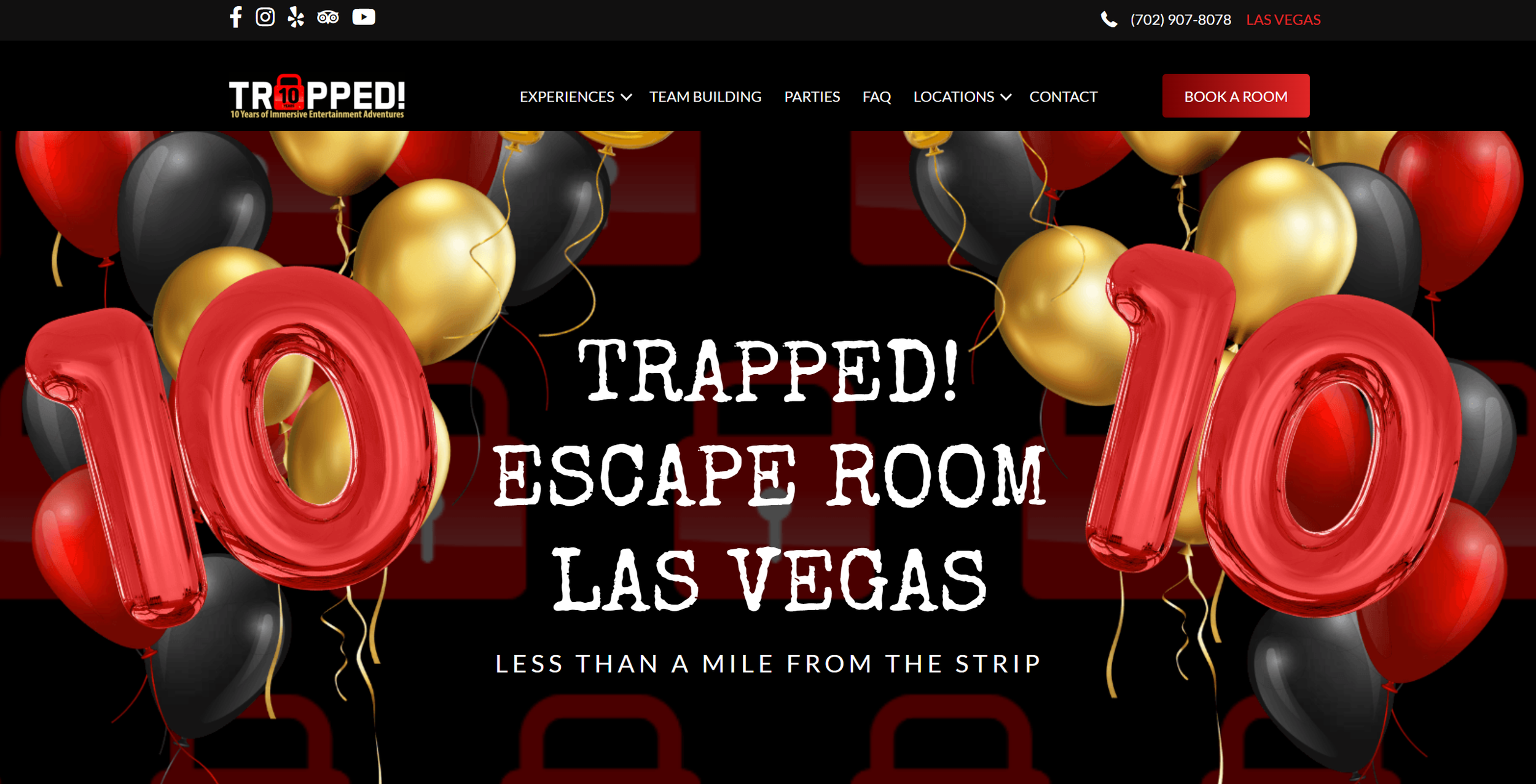Other campaigns I spearheaded include a commercial parody for each room, the brand’s 10 year anniversary celebration, and the launch campaign for Trapped! Vegas’ newest room. I came up with ideas and a game plan, and instructed my staff on what to create.